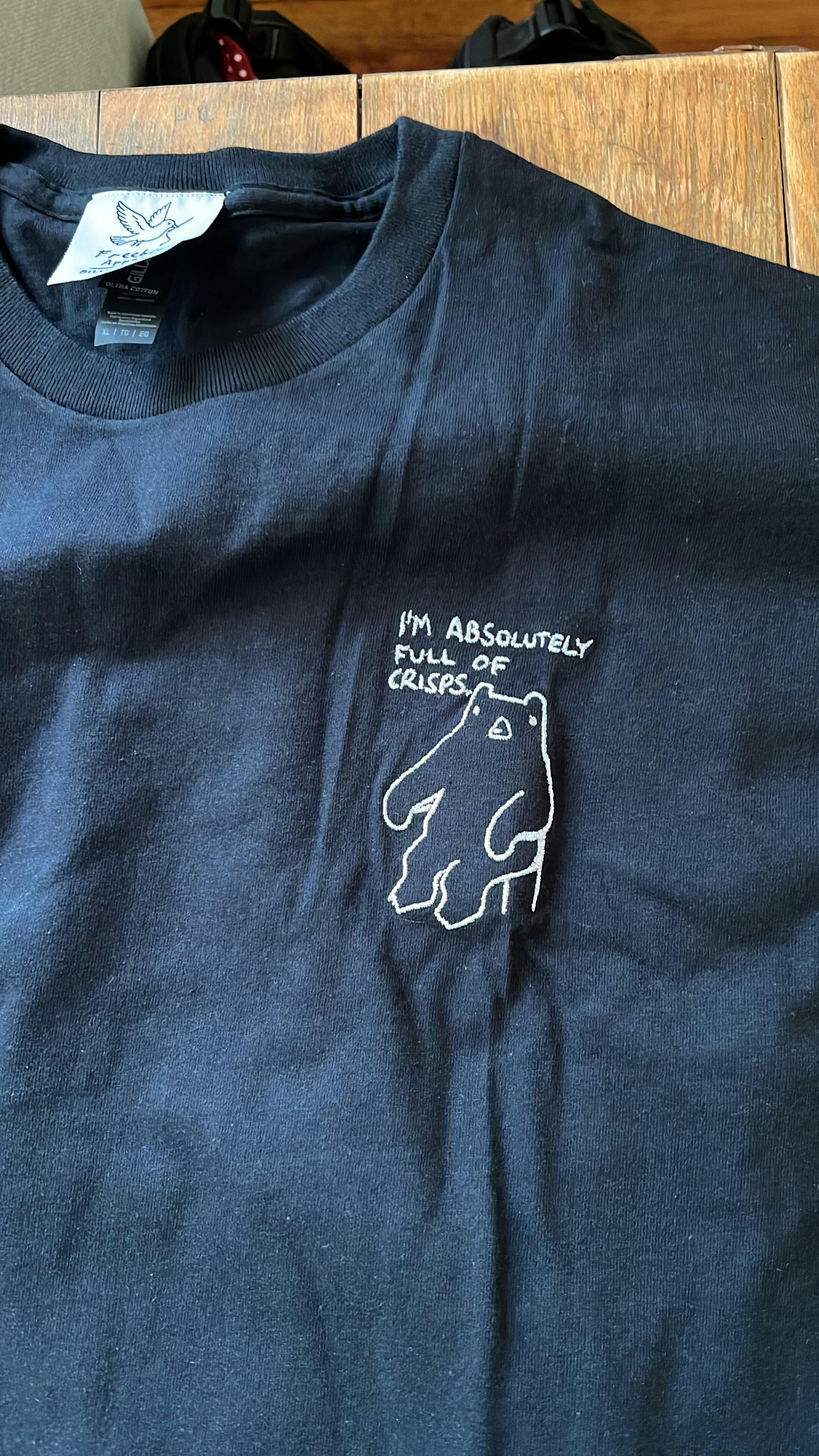 The shirt and the design is fantastic, good quality material and the stitching of the little bear is very good.