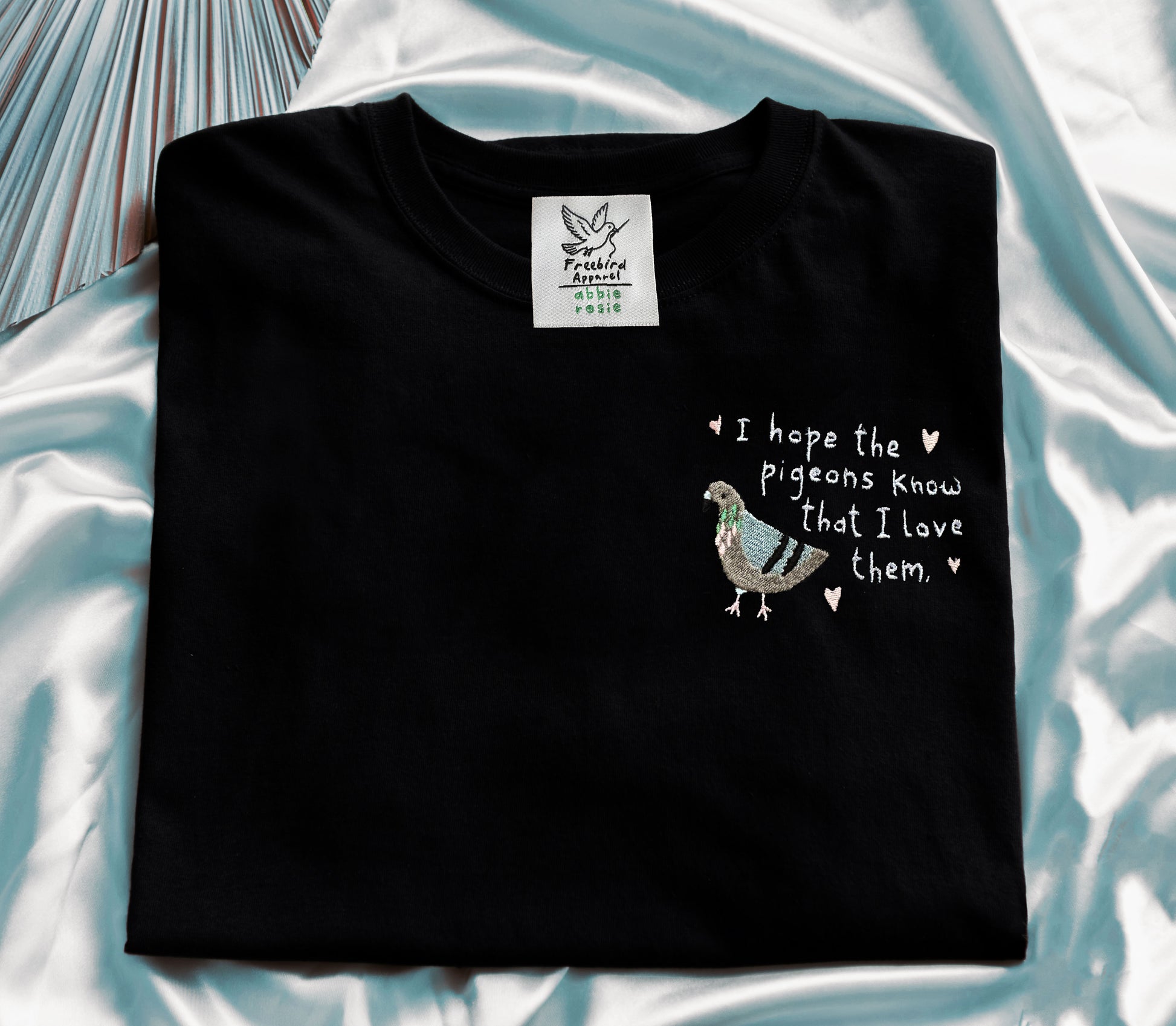 Whimsical, soft, a little silly, and ridiculously heart-warming! The ideal tee for spreading joy (and pigeon appreciation) wherever you go.