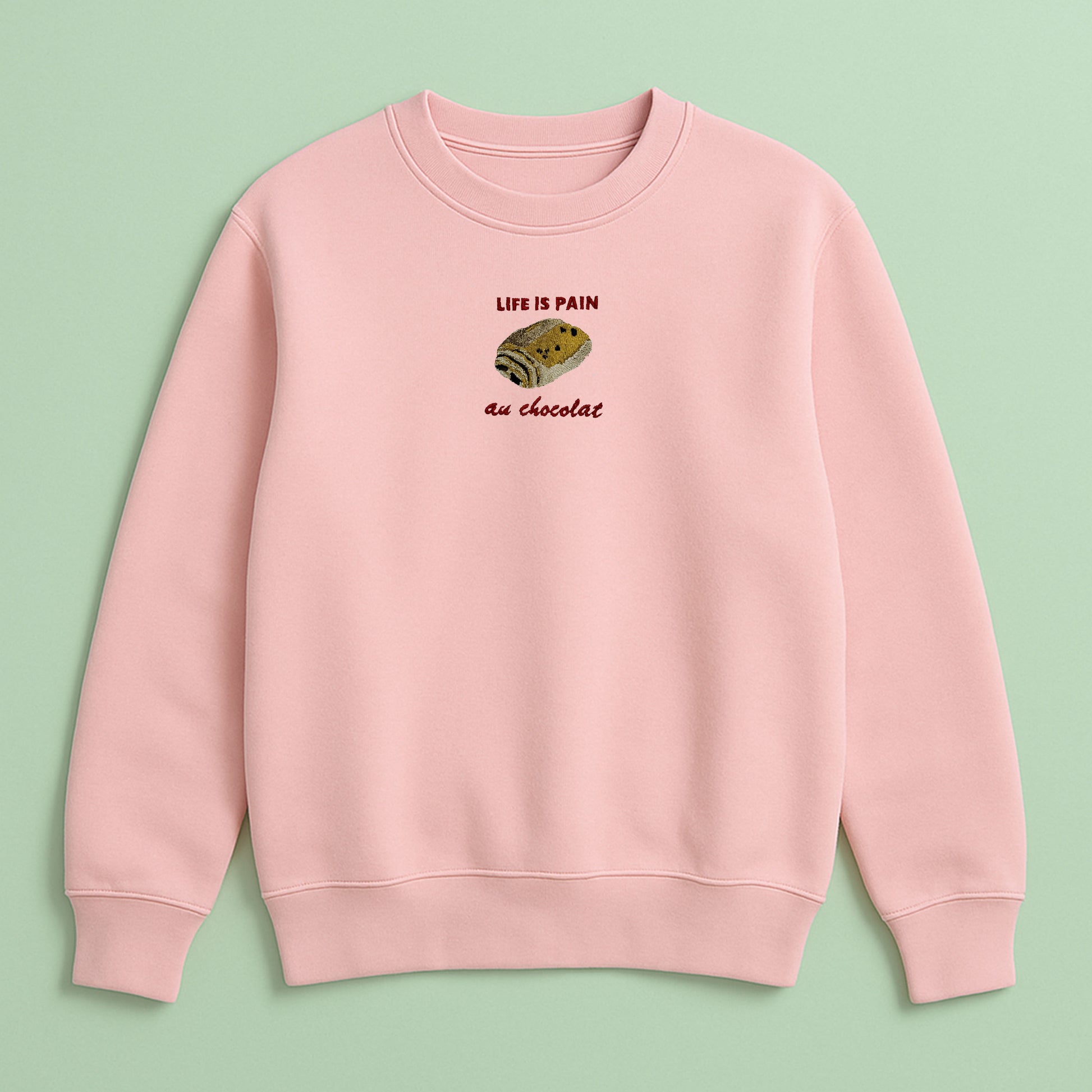 🍫 “Life Is Pain Au Chocolat” – Embroidered Unisex Sweater