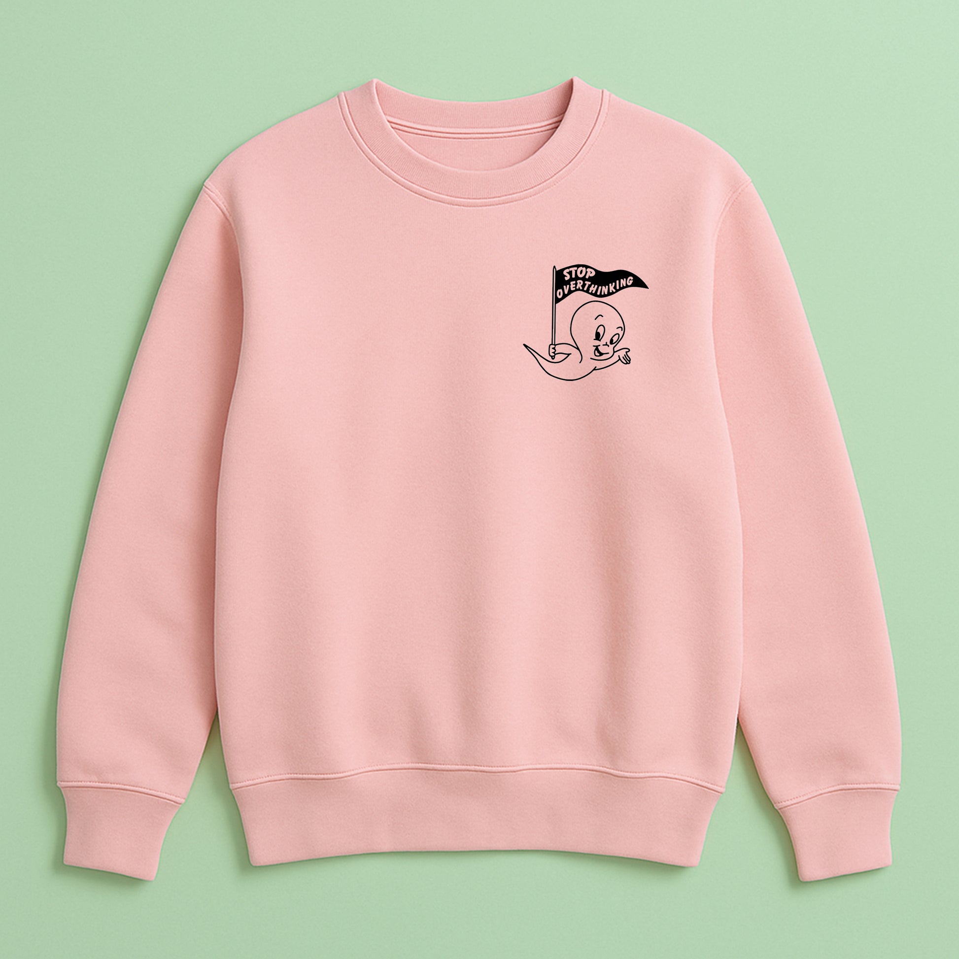 If your brainâs been doing its own haunted house tour lately, this sweater was made for you. Featuring a ghost-boy design that channels 90s nostalgia (think âfriendly ghost who canât stop worryingâ), itâs the comfy statement piece for anyone whoâs mastered the art of thinking too much.
