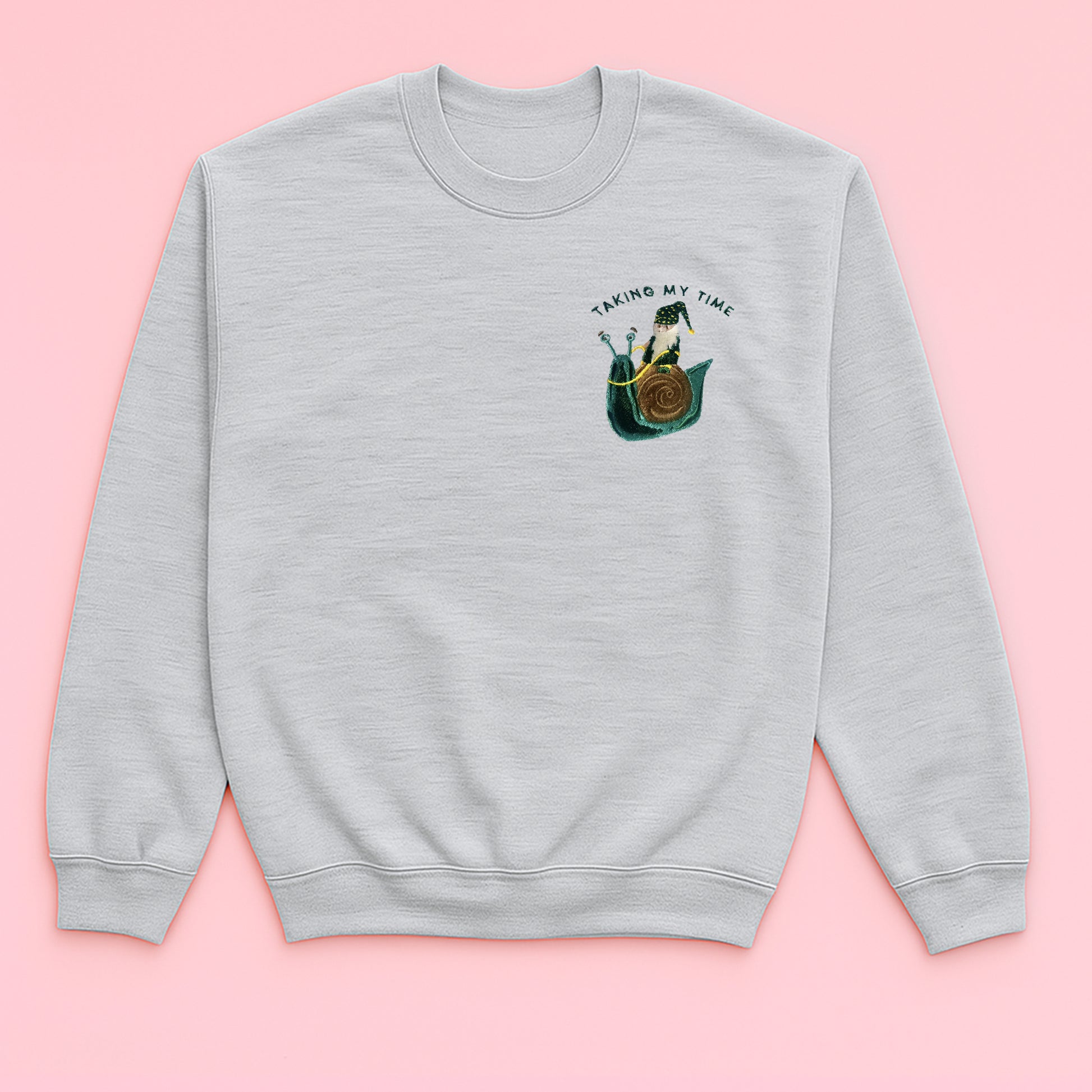 Featuring an adorable gnome cruising atop a snail, this sweater is the perfect reminder to slow down, breathe, and go at your own pace. āØ